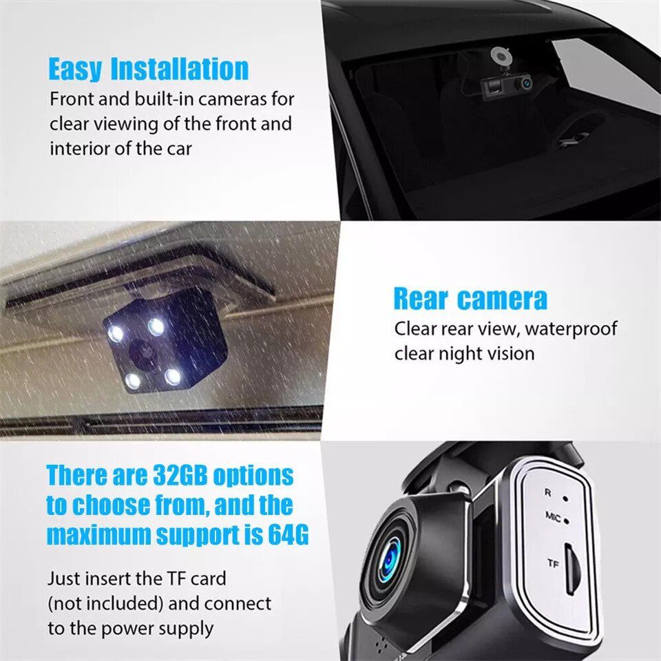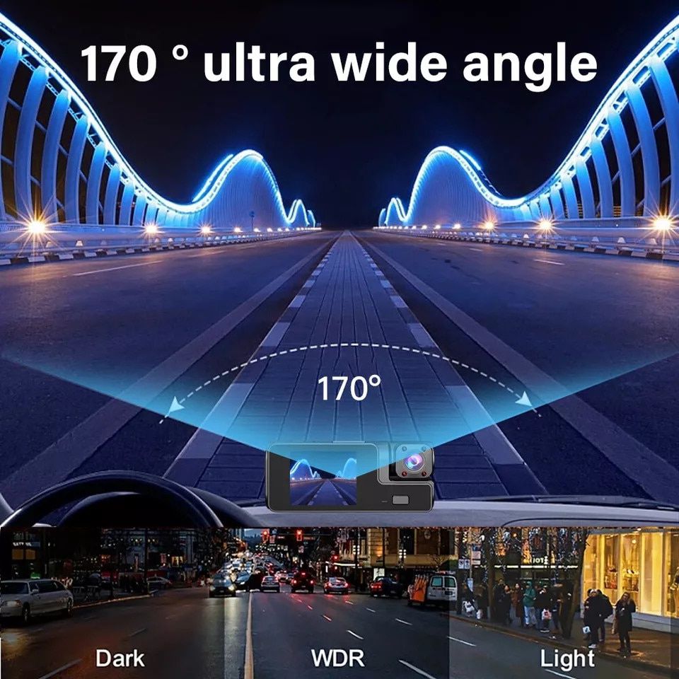 Cu 3 camere (fata, interior, spate), rezolutie Full HD 1080P, unghi ultra-larg de 170° si functii avansate precum viziune nocturna IR, senzor G si inregistrare in bucla, acest dispozitiv este companionul perfect pentru orice drum. Protejeaza-te in trafic, salveaza probe video esentiale si bucura-te de liniste la volan.