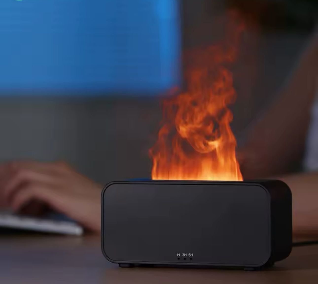 Datorită funcției sale de cronometru, poți seta timpul de funcționare dorit, astfel încât să te bucuri de arome relaxante atunci când ai cea mai mare nevoie. În plus, difuzorul este dotat cu un sistem inovator care creează o hologramă de flacără, ce se schimbă în diferite culori, aducând un strop de magie și confort vizual în orice spațiu.